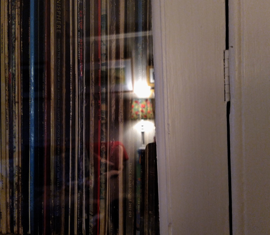 The cupboard is crammed with LPs - and, apparently, a Light Creature, who is gazing out into the room. I know she is there listening very carefully to the music in all those records I have stored.