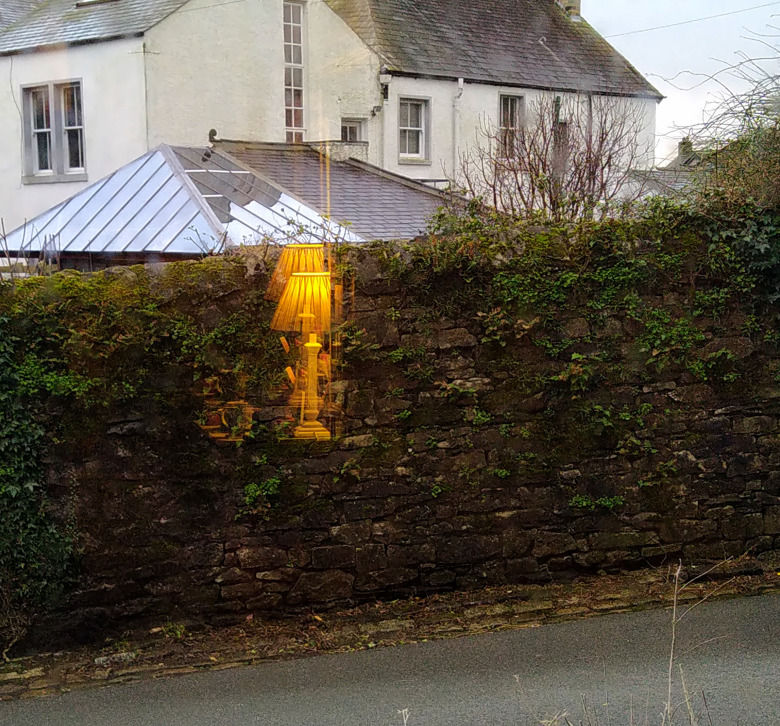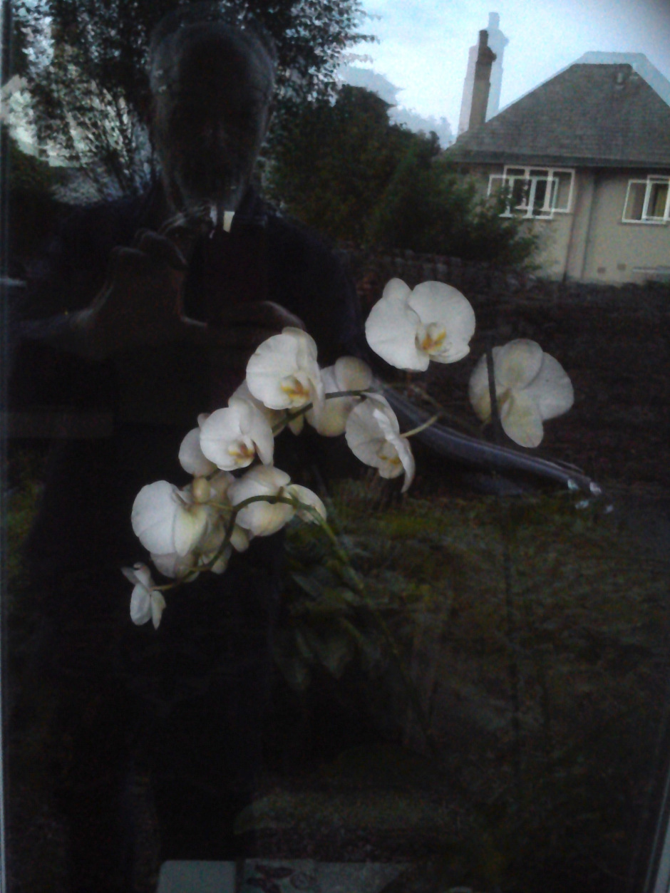 We see the flowers, and behind that, the trees and the house of one of our neighbours - and a vague impression of the photographer.